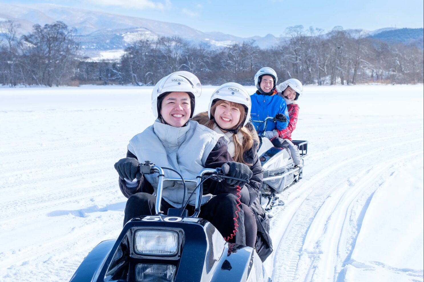 在结冰的大沼湖上享受冬季限定的「冰上摩托车(氷上スノーモービル)」,不需要驾照也能骑!如果不想那么刺激,但又想体验看看冰上活动,就选择「冰上雪橇观光(そりツアー)」吧!坐在雪橇里被摩托车拖着走,轻松欣赏被白雪点缀的驹之岳,推荐给长辈或不想吹风的人!