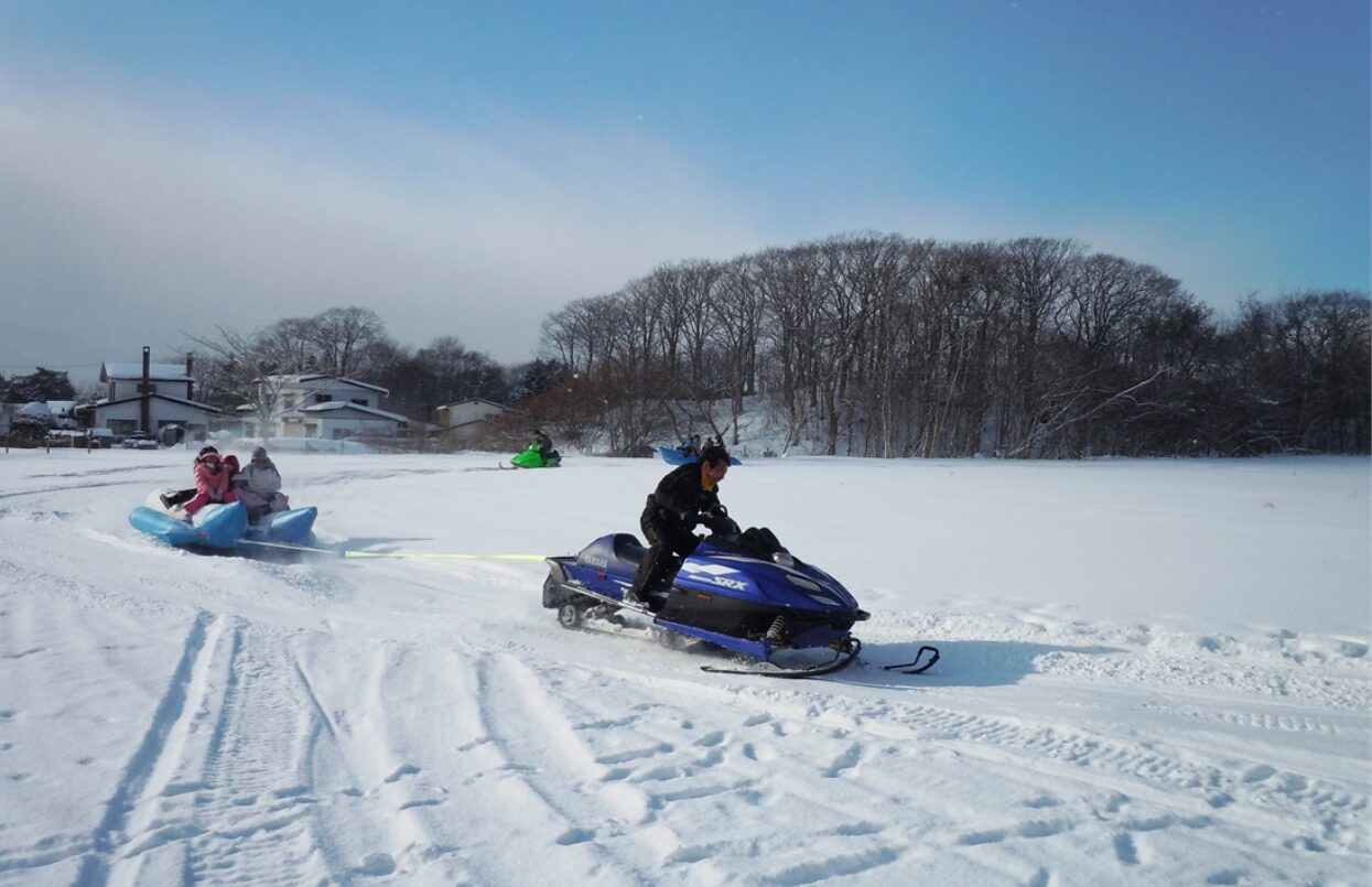 雪花纷飞的北海道,当然少不了雪上摩托车(スノーモービル)、雪上橡皮艇(スノーバナナボート),跟海上一样刺激,只是浪花变成了雪花!