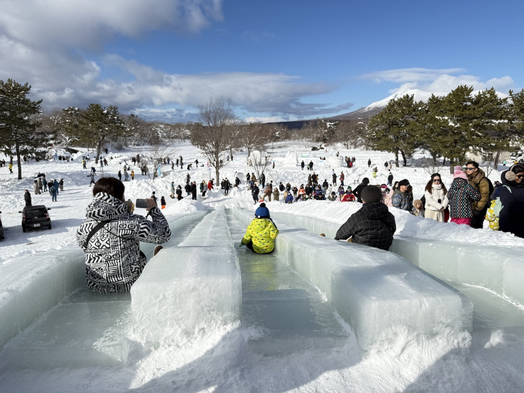 「大沼函馆冰雪节」是道南(北海道南部)冬季最热闹的庆典!活动最受欢迎的就是用结冻的大沼湖水,切割成冰块,再堆积做成的「巨大冰溜滑梯」,绝对是大人小孩都会爱上的放电天堂!