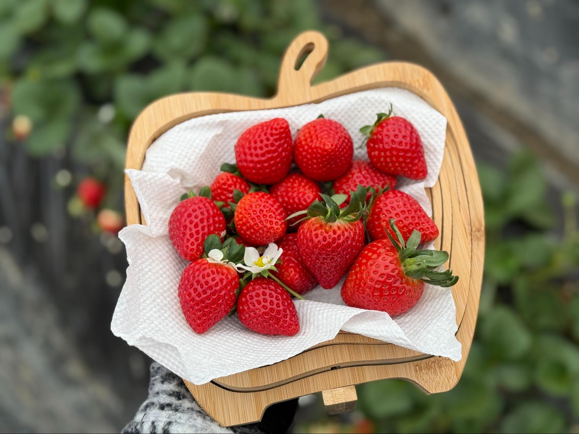 在温室里,时间似乎过得特别快。当手中的盒子逐渐装满,也代表这段与草莓最亲密的时光即将告一段落。那份刚摘下时的香气与甜味,已深深留在记忆里。