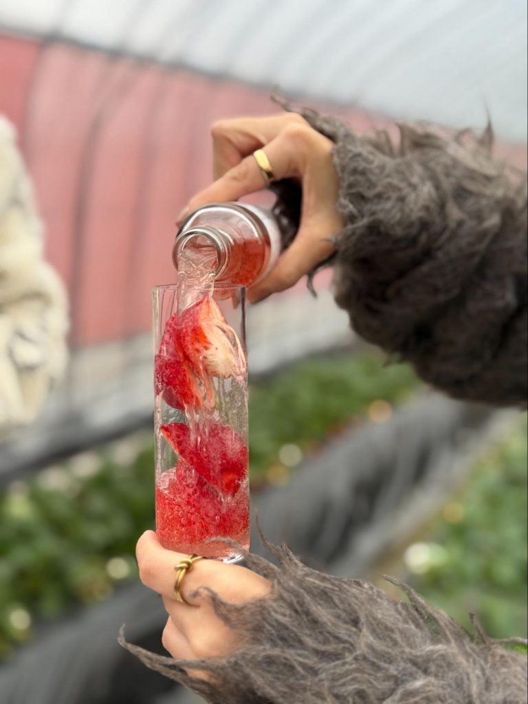 与冰咖啡一同入口,为这顿午餐画下令人满足的句点。从果园到餐桌,草莓以不同形式陪伴着整段行程,也让这趟体验更显完整。