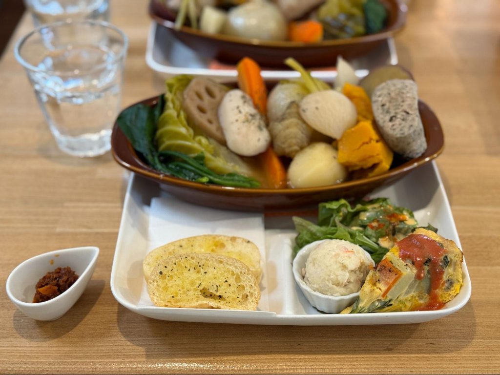 午餐以清爽、健康的料理为主,份量恰到好处,吃起来没有负担,适合在采草莓行程之后慢慢享用。窗外是吉见町宁静的街景,室内则流动着轻松的气氛,让人暂时忘记时间,只专心享受这段属于旅途中的午餐时光。