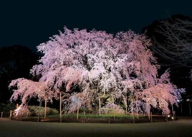 园内高约 15 公尺、宽约 20 公尺的枝垂樱,是六义园的象征景观,樱花满开时,淡红色花朵如瀑布般倾泻而下,景色优雅动人。结合历史庭园与樱花美景,加上地处交通便利的东京都心,六义园成为东京赏樱季不可错过的经典名所。