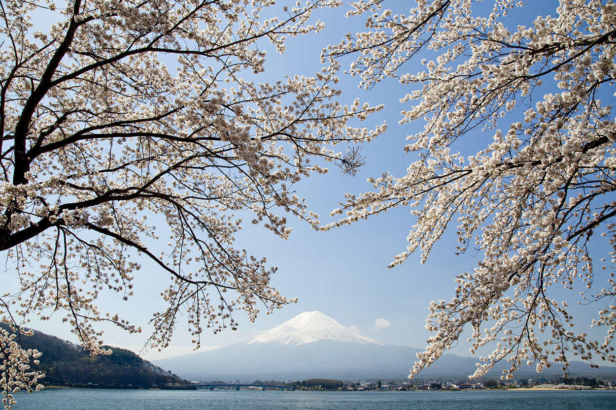 樱花季造访「河口湖北岸」,能同时欣赏到以「富士山」与湖面为背景的樱花美景,是拍摄「樱花 × 富士山」经典画面的绝佳地点。