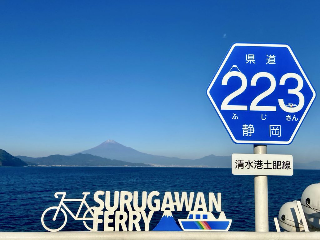 日本唯一的海上公路「县道 223 号」。223 是「富士山(ふじさん)」的谐音,最吸引人的地方就是能够从海上,以极佳的「黄金角度」欣赏富士山!甲板上的「县道 223 号道路标示」附近,是拍摄富士山的绝佳拍摄点!