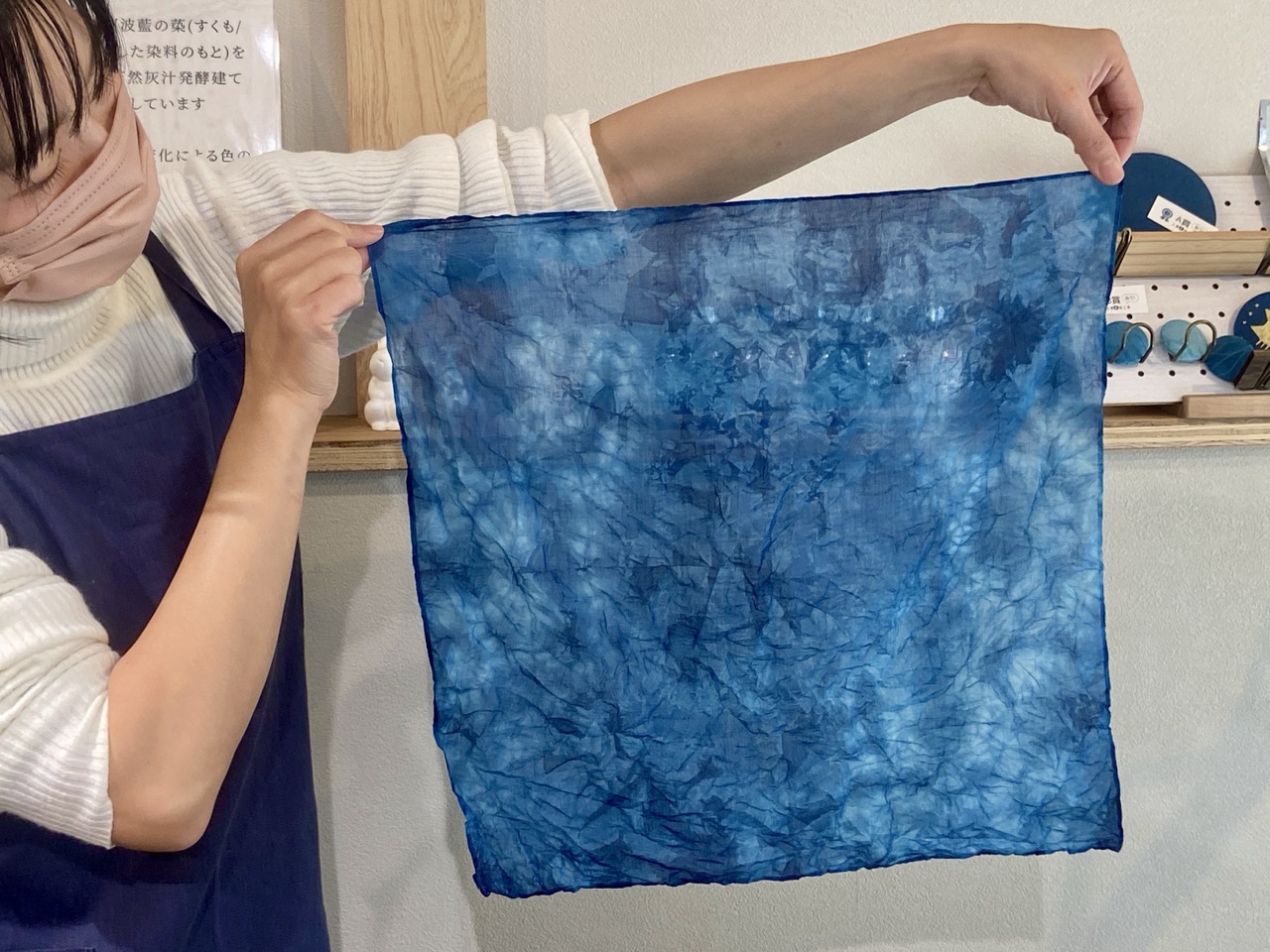 看着亲手制作完成的蓝染手帕,浅浅深深的日本蓝,静冈的蓝色记忆,是独一无二的纪念品。
