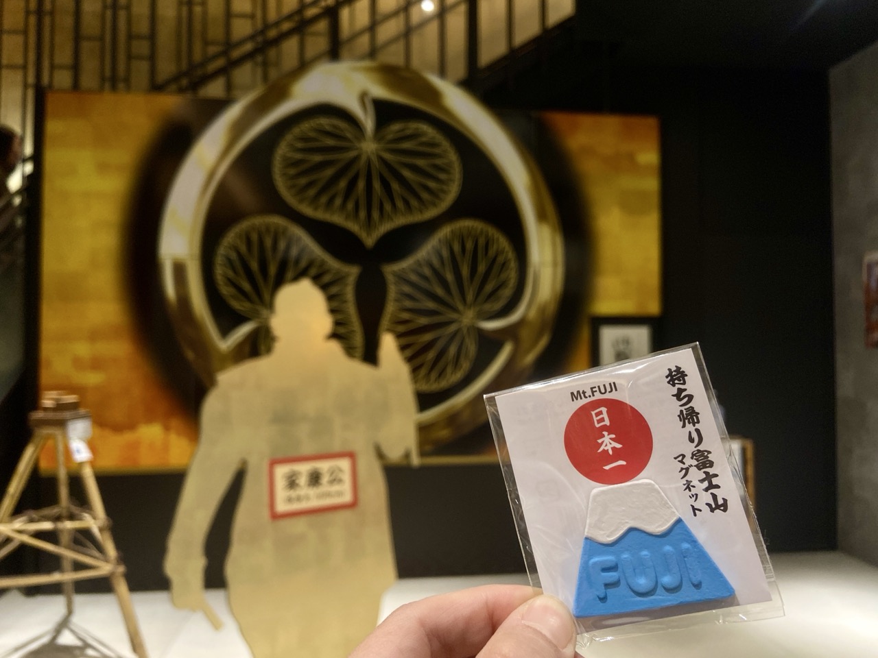 缆车乘车处介绍着德川家康将军,还有实际等身大的家康公身高展示,让大家对于家康公更有更具体真实的想像,另外还有纪念品店,在这里找到了以富士山的沙土所做成的磁铁!即使没有爬富士山、亲身踩过富士山上的土,直接以这样的纪念品方式把富士山的泥土带回家超值得纪念!