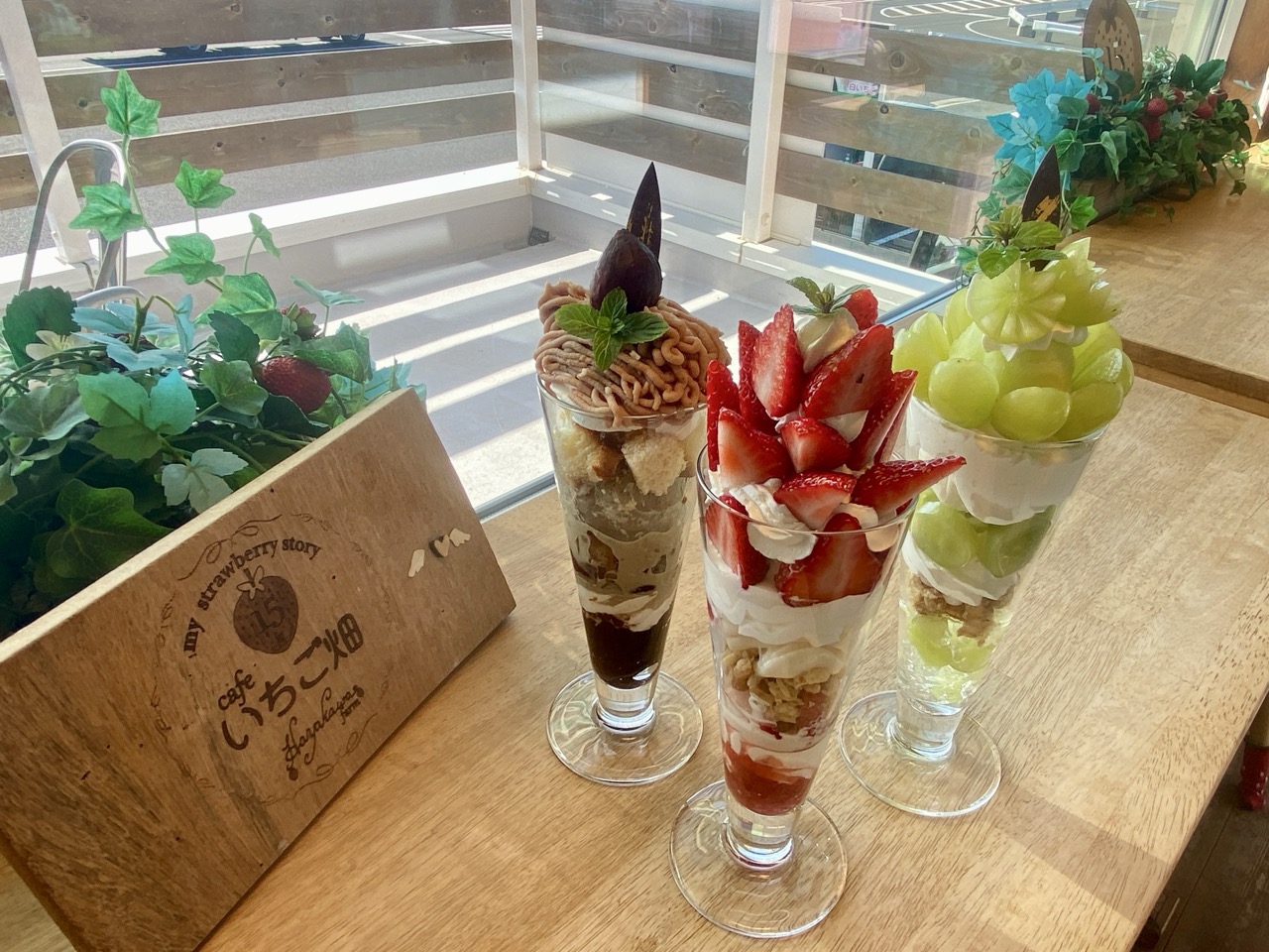 这天刚好店家采收了大量新鲜草莓,正好能享用必点招牌,新鲜草莓圣代(生いちごパフェ),季节限定的「白草莓圣代(白いちごパフェ)」就可遇不可求了。