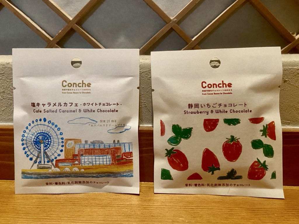 依依不舍离开时, 发现了静冈当地著名的巧克力专门店「茶果子屋 Conche(茶菓子屋コンチェ)」这家特色咖啡厅,巧妙地结合了静冈茶、静冈产食材和高品质巧克力,打造出独一无二的「和风特色巧克力」,拿来当伴手礼好适合!