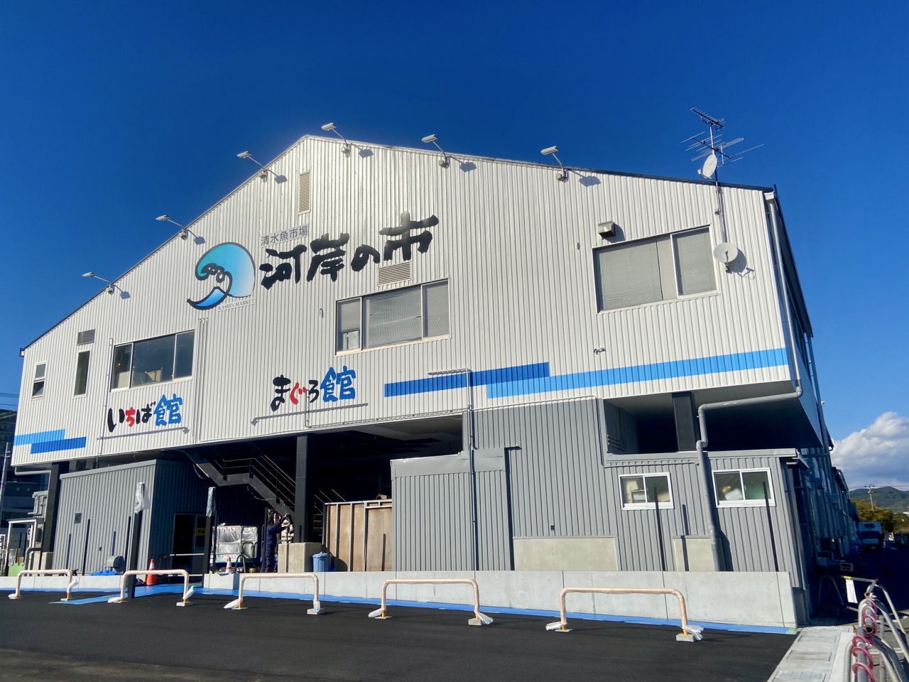 从清水站徒步只要 3 分钟,位于静冈清水港旁的「河岸の市(河岸之市)」是当地有名的海鲜市场,分成「市场馆(いちば館)」、「鲔鱼馆(まぐろ館)」。「鲔鱼馆」有许多海鲜餐厅可以选择,午餐选择在这里享用新鲜的静冈海鲜!
