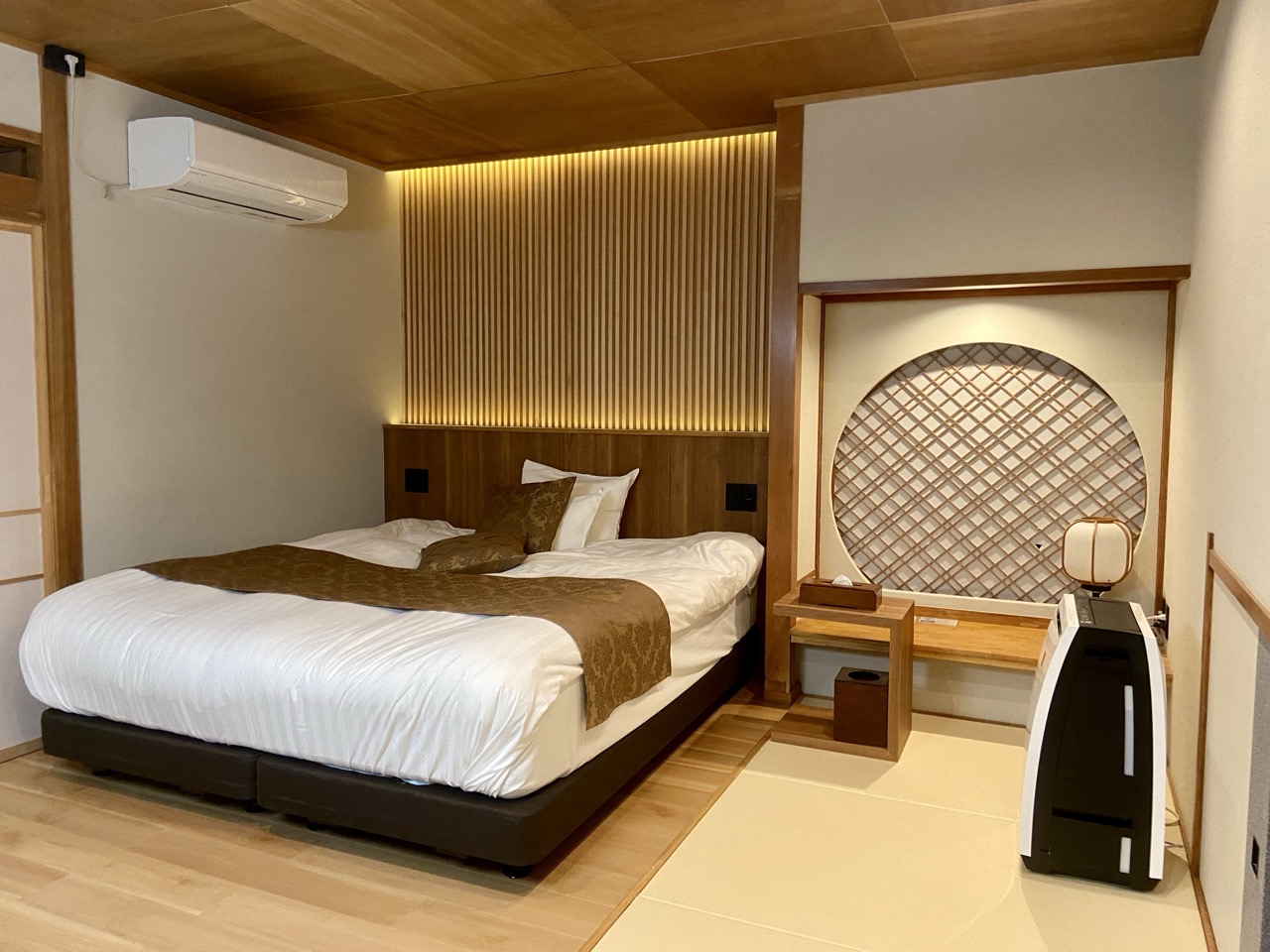 打开床边的拉门还有放松的小空间,早上很适合坐在这里静静品味静冈的早晨与街道海景。