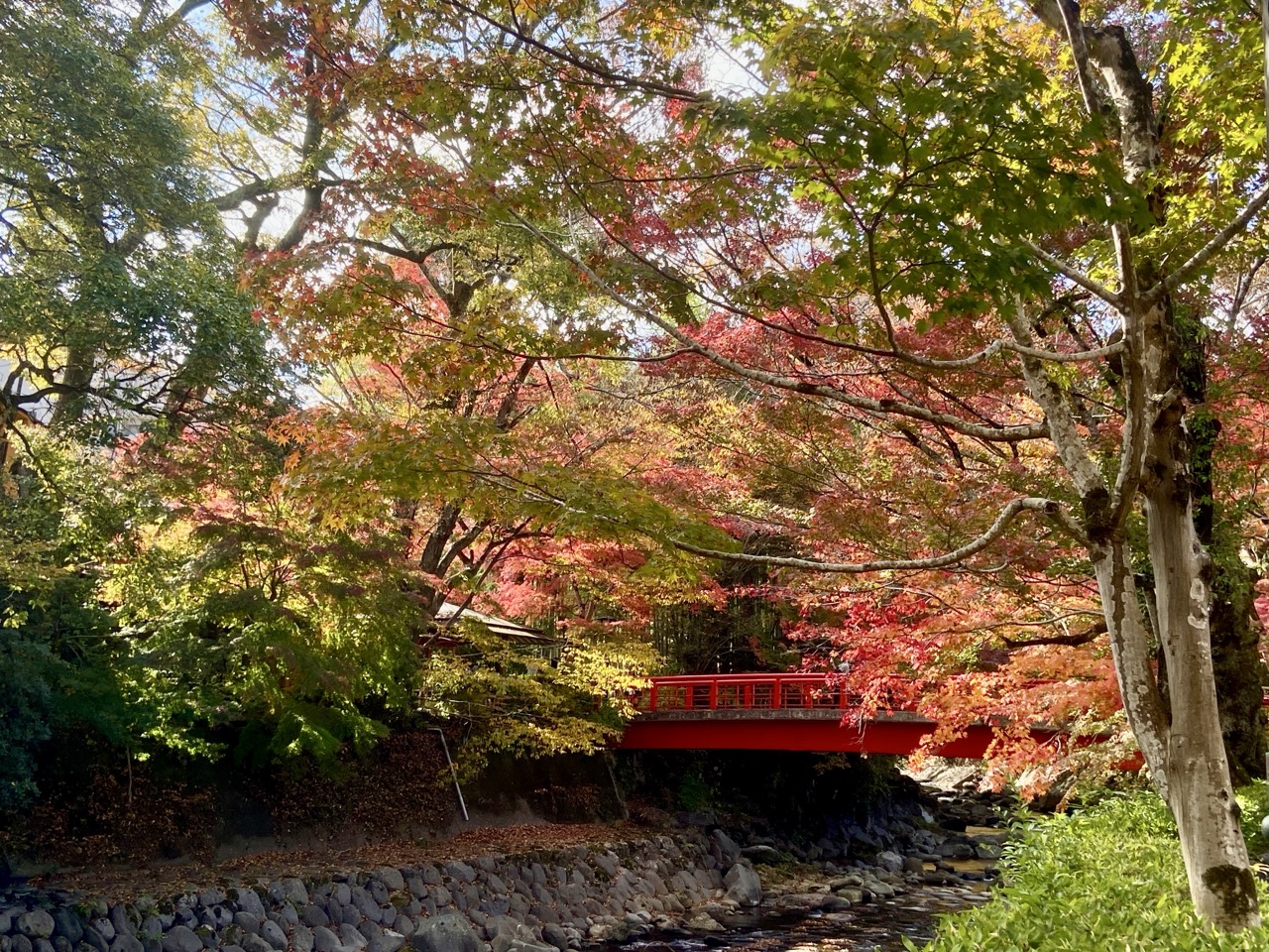 修善寺温泉街的核心,当然是那座历史悠久的修禅寺。火红、金黄的枫叶从寺庙的屋檐垂落,光影交错间,彷佛能听到千年前的诵经声回荡。修善寺的秋天,值得放慢脚步,用身心去感受那份浓郁、深刻的深秋浪漫。