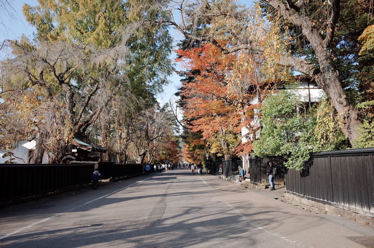 除了赏樱,角馆也是秋田的赏枫胜地。每年 10 月中旬至 11 月上旬,武家屋敷旁的树皆被染上鲜艳的橘黄色与红色,宛如一幅油画。如果错过角馆樱花季,角馆的枫叶季也是很不错的选择。