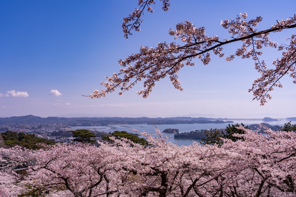 位于宫城县松岛町的「西行折返之松公园(西行戻しの松公園)」,与京都府的「天桥立」、广岛县的「宫岛(又称严岛)」并称为「日本三景」。每年春天会绽放约 260 株粉红樱花树,从高处俯瞰,将会见到郁郁葱葱的绿树、松岛湾湛蓝的大海,与娇嫩可爱的粉色樱花,共同演绎绝美的视觉盛宴。