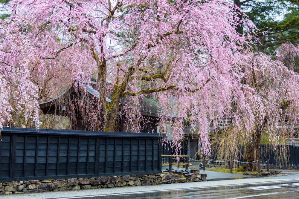 位于秋田县仙北市的角馆,以历史悠久的佐竹藩城下町闻名,而「角馆武家屋敷(角館武家屋敷通り)」这条街道,风格独特的武家屋敷黑墙,映衬着粉嫩的樱花,白天夜晚都别具韵味,成为赏樱的绝佳景点。每到春天,4 月中旬至 5 月上旬,被指定为国家天然纪念物的樱花,约 400 株枝垂樱在此竞相绽放,呈现出迷人的粉红色调。