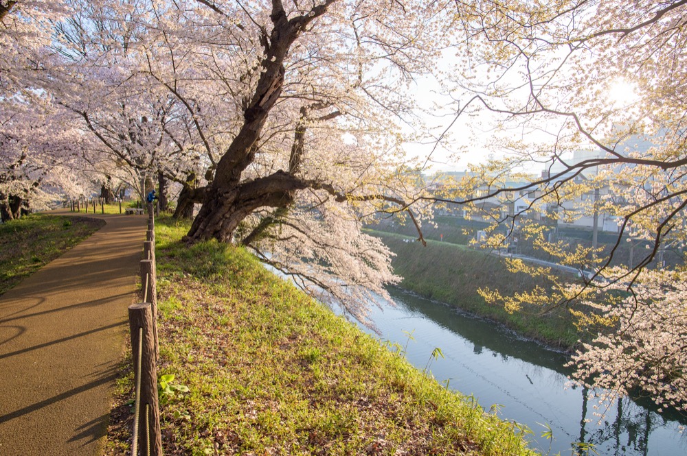这里的樱花大道长达 2 公里,拥有超过 1 万株、约 150 种的樱花树,每年 4 月中旬开花的染井吉野樱,到 5 月上旬绽放的霞樱等,多种樱花品种在此竞相绽放。