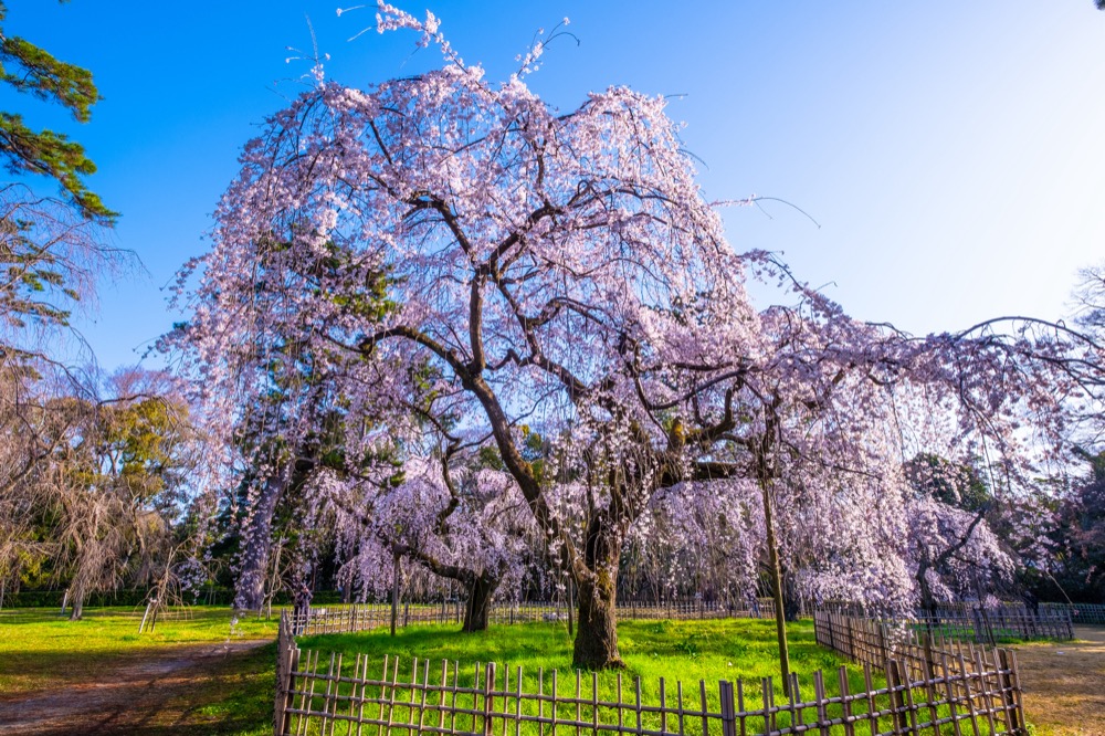 这片广大的庭园种满各式各样的植物,成为旅人们放松心情、欣赏风景的天堂。漫步在御苑的宽广空间当中,可以尽情感受樱花的美丽,约有 1,100 棵樱花树漫开整片园区,其中还有难得一见的品种,如优雅的樱松,特别值得一提的是垂樱,景色之美让人屏息。