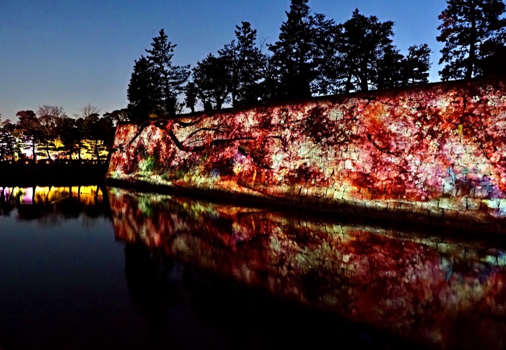 每年春季,二条城绽放约 50 品种、约 300 株樱花树,与壮阔的城墙形成绚烂的画面。尤其在夜晚,城堡被温柔的灯光照亮,成为夜樱的仙境。
