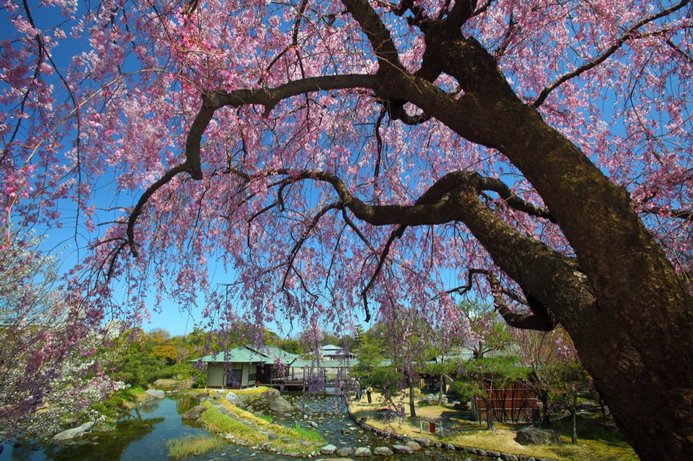 每年 3 月,庭园都迎来美丽的枝垂樱、山樱、御衣黄等各品种樱花盛放,为素雅的庭园增添缤纷与华丽。在这里还可以参加导览活动,深度了解庭园的背景,以及园内植物与动物的奇妙之处。