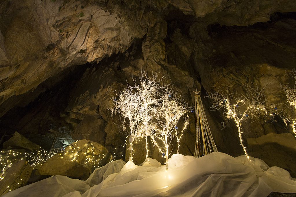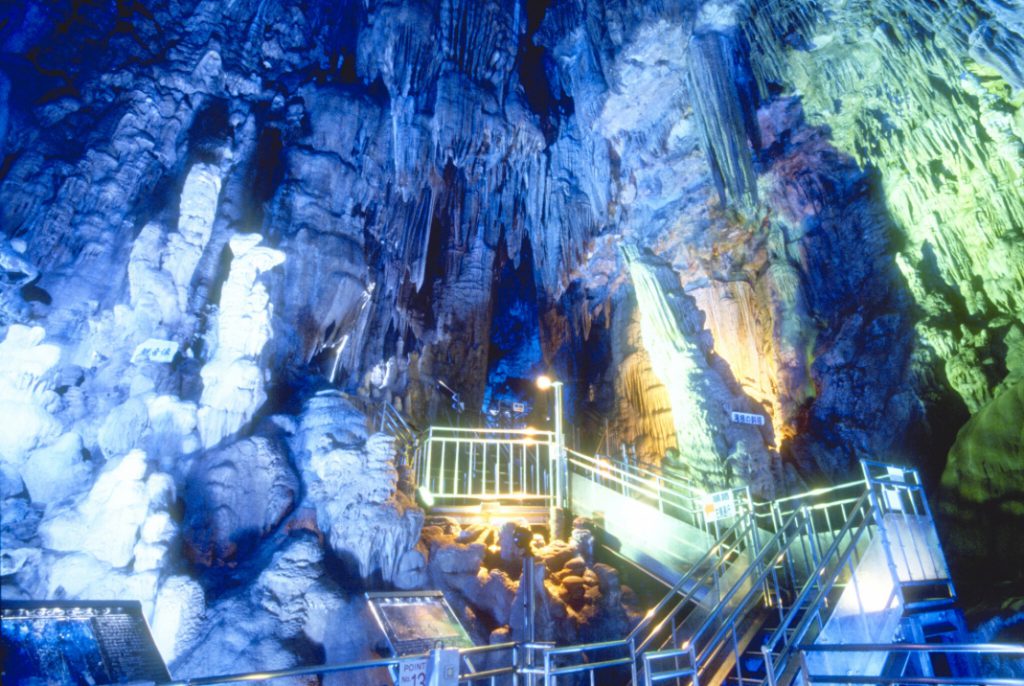 其中最大的洞穴「泷根御殿」非常令人感到视觉震撼。此外「月之世界」利用钟乳洞为背景,加上灯光效果,展现神秘奇幻的表演。洞内温度维持十五度左右,意外成为虽然是避暑胜地。地上潮湿,贴心提醒大家记得穿防滑的鞋子拜访。