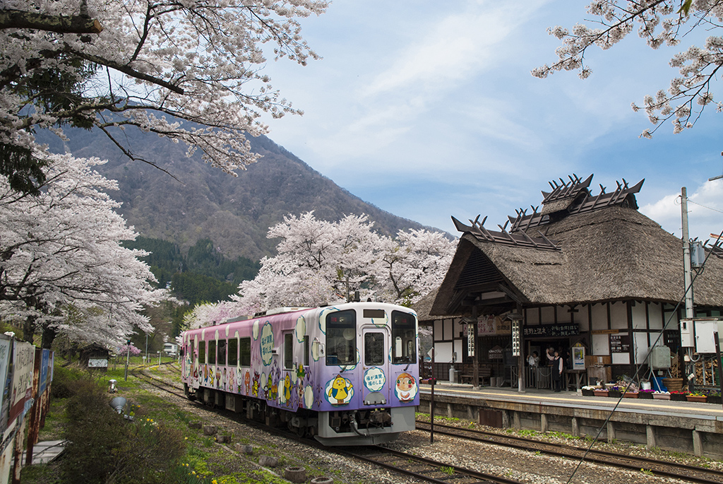 会津车站是日本唯一的茅草屋顶车站,建筑本身非常优美典雅。候车室里设置围炉,可以坐在这里暖身喝茶等候电车进站,十分日本风情的体验,特别吸引外国旅人。车站旁边有一个足汤 「亲子地藏之汤」,可以在这里休息和泡脚。