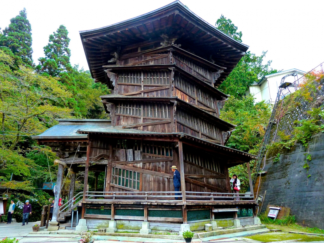 「荣螺堂」建筑物的螺旋状外观状似蝾螺,故得此名。号称是世上唯一的六角三层、双层螺旋结构的木造建筑,被列为国家重要文化资产。走进内部,一边透过打斜的窗户窥看外面风景,一边爬上倾斜阶梯。