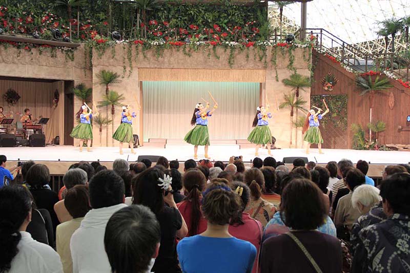 乐园内以磐城汤本温泉丰富的泉水,构成六个温泉主题公园,可以让你尽情享乐。日本最高最长的人体滑梯「BIG阿啰哈」在2017年问世,是座令人惊心动魄的滑梯!当然草裙舞女孩和火刀舞者的表演也不容错过。