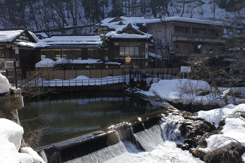 河川沿岸旅馆设施林立,沿路的小商家充满昭和初期的怀旧感。东山温泉的泉质特色是硫酸盐温泉,据说对改善风湿、高血压、皮肤病等有帮助。不过温泉温度较高,提醒您要注意浸泡时间。