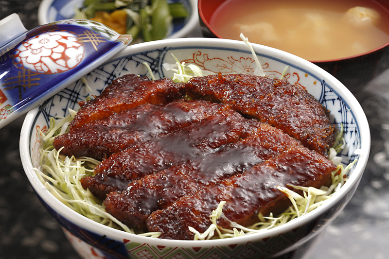 从20世纪初开始在会津地区流传起来的当地美食。会津沾酱猪排丼的作法是先在白饭上铺高丽菜丝,再放上沾满甜咸酱汁的猪排,口感跟一般日式猪排盖饭不同,而且份量超多,特别深受食量大的朋友欢迎。