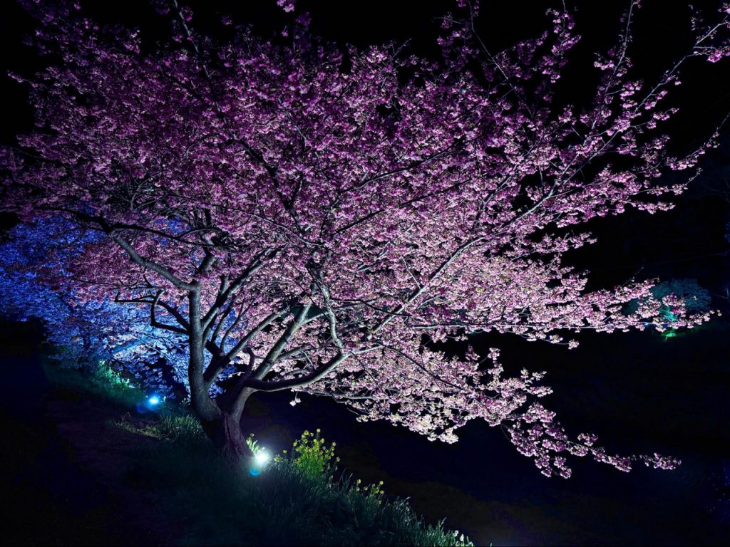 每年的 2 月~3 月,南伊豆町会举办樱花祭典「南伊豆樱花与油菜花祭(みなみの桜と菜の花まつり)」,白天与夜晚的南伊豆町呈现截然不同的景色。