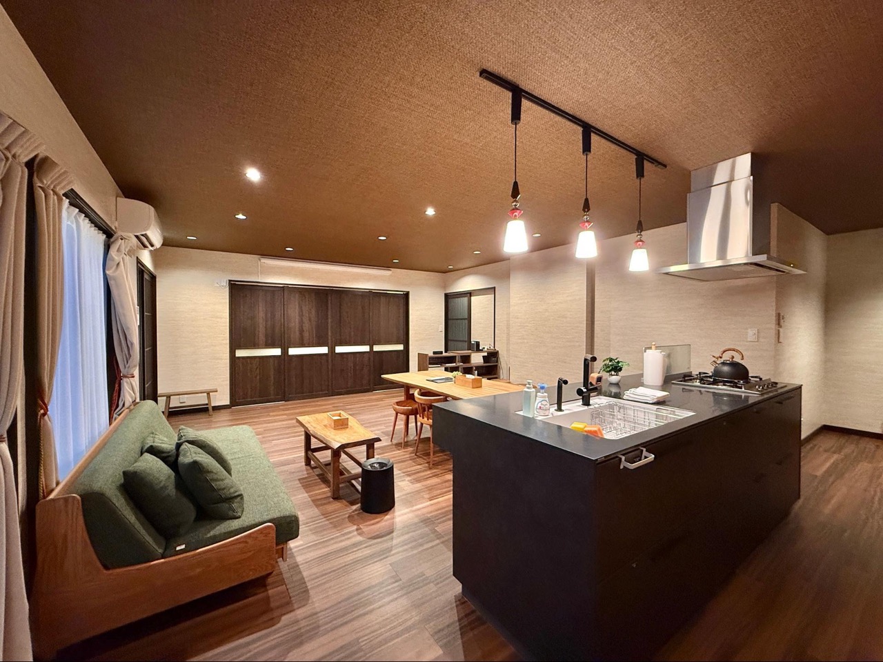 相较于多数日本住宿偏小而精致的空间尺度,这里的开阔与舒展,远超于一般在日本常见的住宿形式。与其说是住一晚,更像是在日本暂时拥有一栋自己的房子。