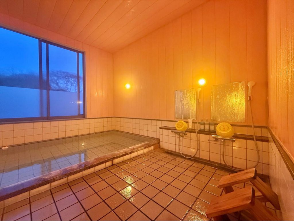 室内温泉规模近似日式温泉旅馆的大浴场,空间宽敞、浴池深度充足,让人得以真正放松。旅途中能在专属空间里享受温泉,而不需与他人共享,是难得的奢侈。