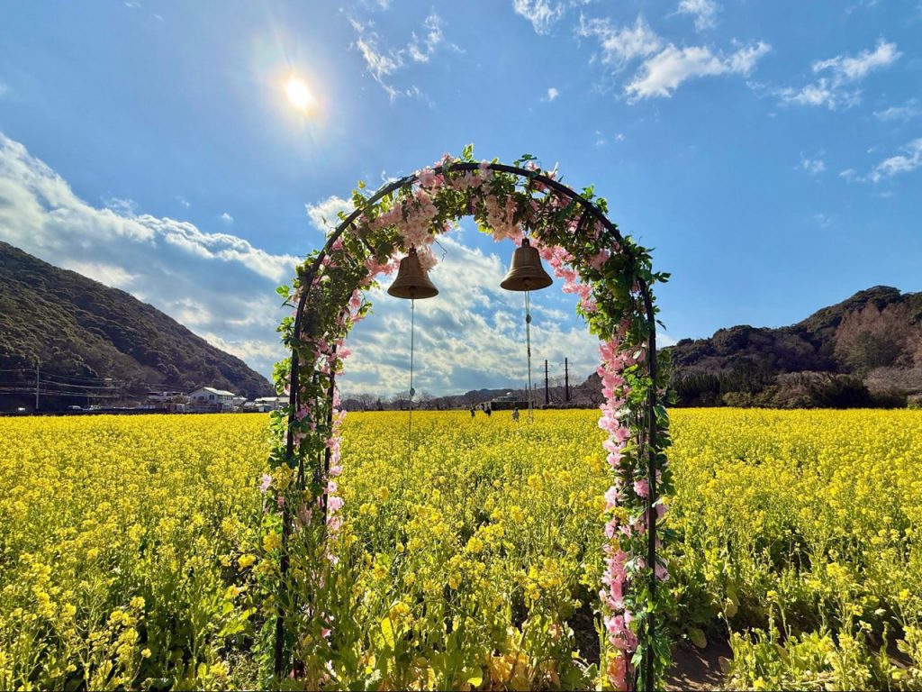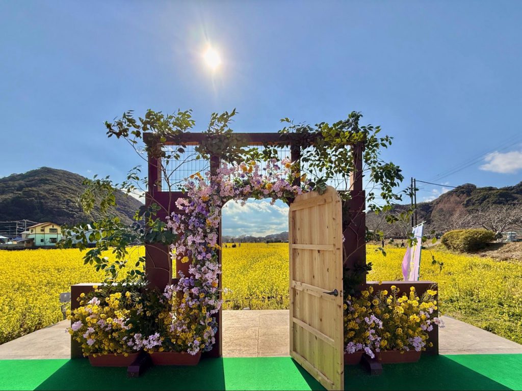 油菜花田还设置名为「油菜花门(菜の花ドア)」的可爱装置,伫立在花海之中的门框,看似简单,却意外地成为视线的焦点。