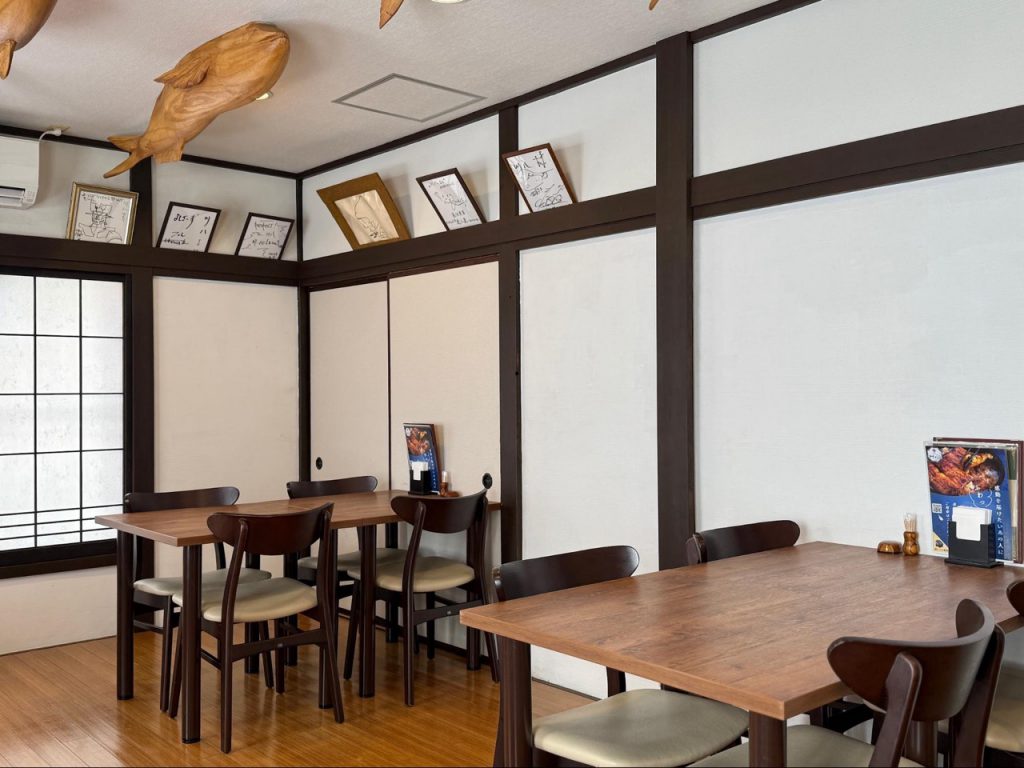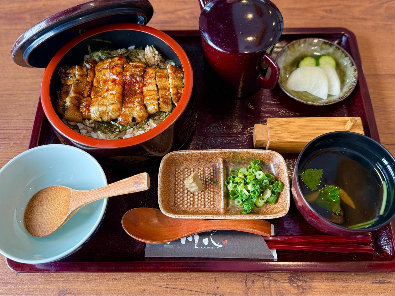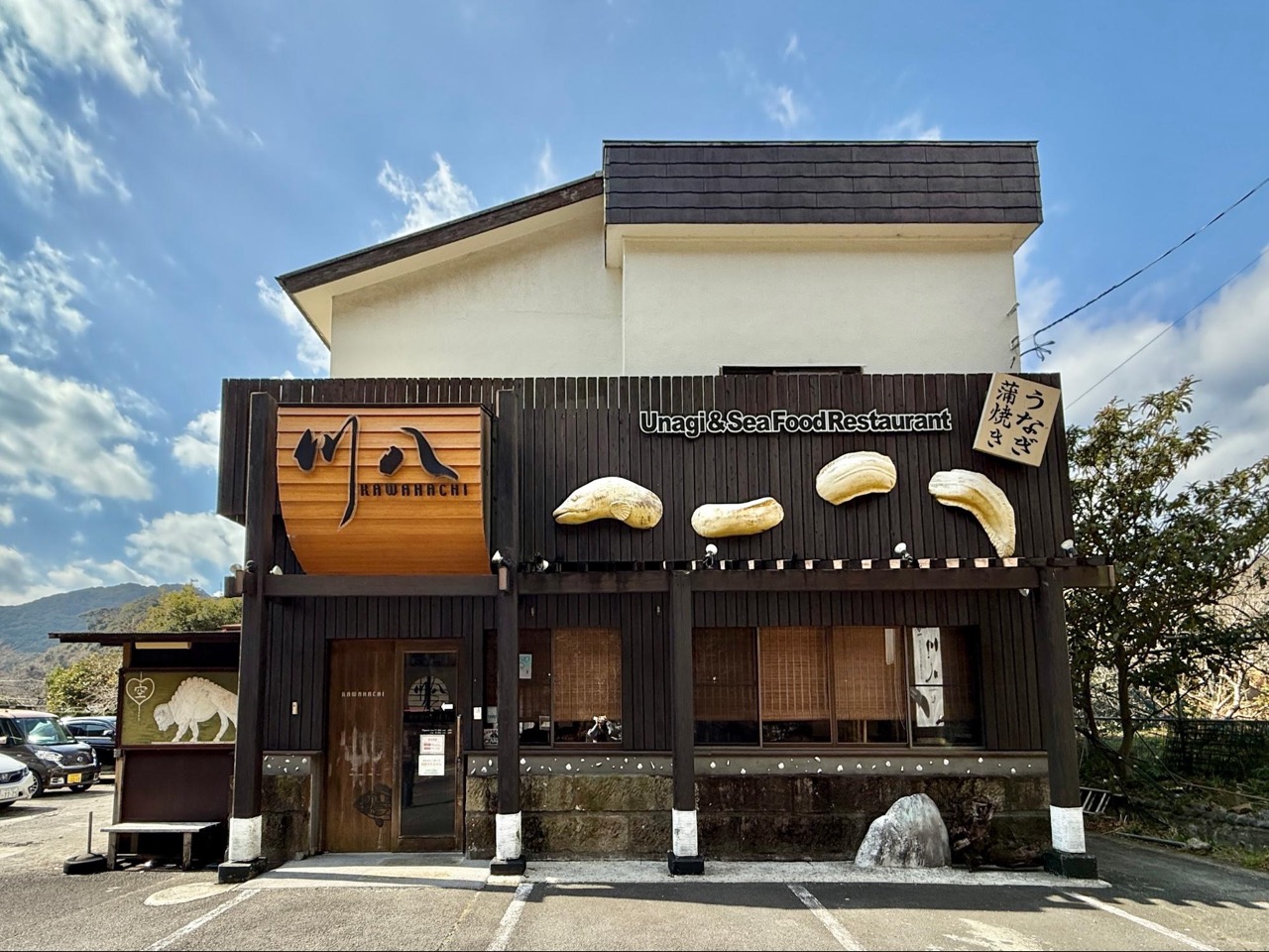 午餐选择在创业于西元 1976 年(昭和 51 年)的老字号鳗鱼饭餐厅「川八鳗鱼(川八うなぎ)」用餐,设有专用停车场,自驾前来十分便利。