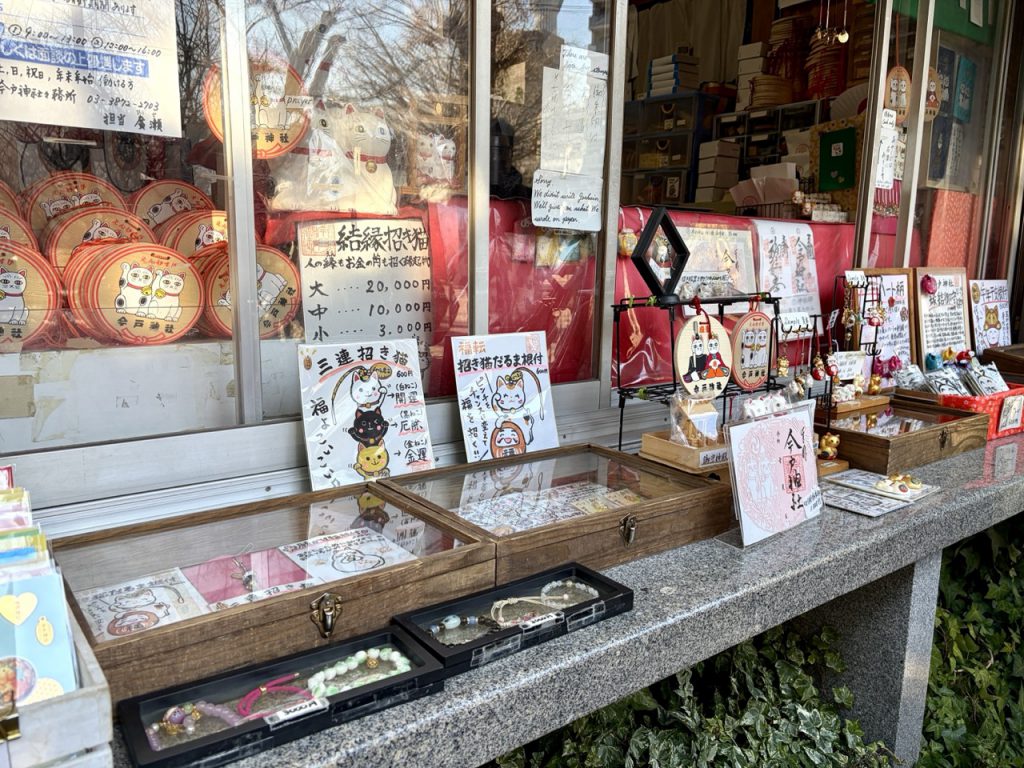 造访神社,除了祈求平安、许下愿望之外,神社的御守,也就是护身符,是旅人会想放在身边的纪念品。今户神社境内不仅能看到象征良缘的各种招财猫,还有设计可爱又寓意深远、以猫为主题的特色御守与御朱印!不论是情侣、单身旅人,或单纯喜欢猫咪文化的人,东京自由行来到浅草,今户神社是值得特地造访的一站喔。