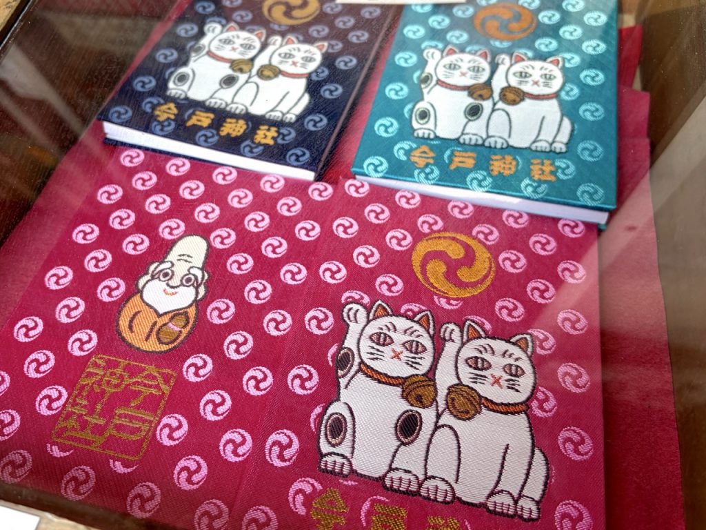 而今户神社的御朱印帐相当有特色,封面上是传统招财猫的模样,以桃红色、深蓝色与土耳其蓝等鲜艳配色为主,非常适合喜欢传统招财猫、也想收集御朱印的旅人。