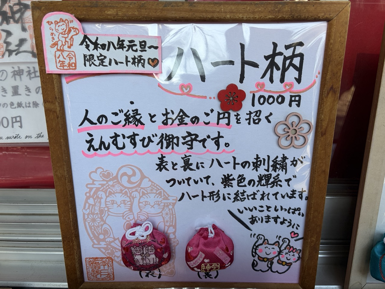 其中的限定款,是有着爱心刺绣的粉红色御守。同样取谐音,为旅人招来良缘、日币「円」、好事连连!