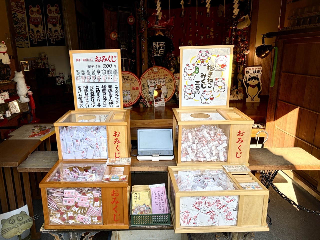 参拜完后,可以到旁边的社务所购买「授与品」。今户神社推出的授与品,如:御守、御朱印、御神签⋯⋯等,都和招财猫有关喔!