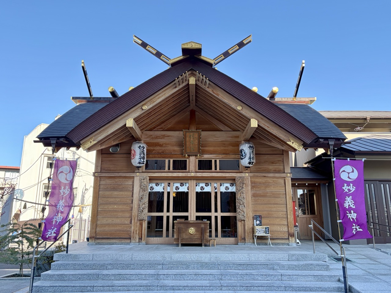 走进妙义神社参拜时,值得停下脚步看的,是社殿上的「升龙雕刻」与「降龙雕刻」。相传古时候妙义神社社殿上刻着一对双龙,是神社的重要象征。