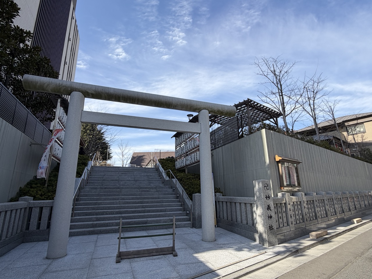 不论搭 JR 山手线 或地铁,出站后步行约 5 分钟即可抵达神社。沿途多为住宅区与小店铺,街道安静,节奏缓慢,很适合把心情慢慢切换到「参拜模式」。妙义神社位在微微的坡道上,建议穿好走的鞋子。