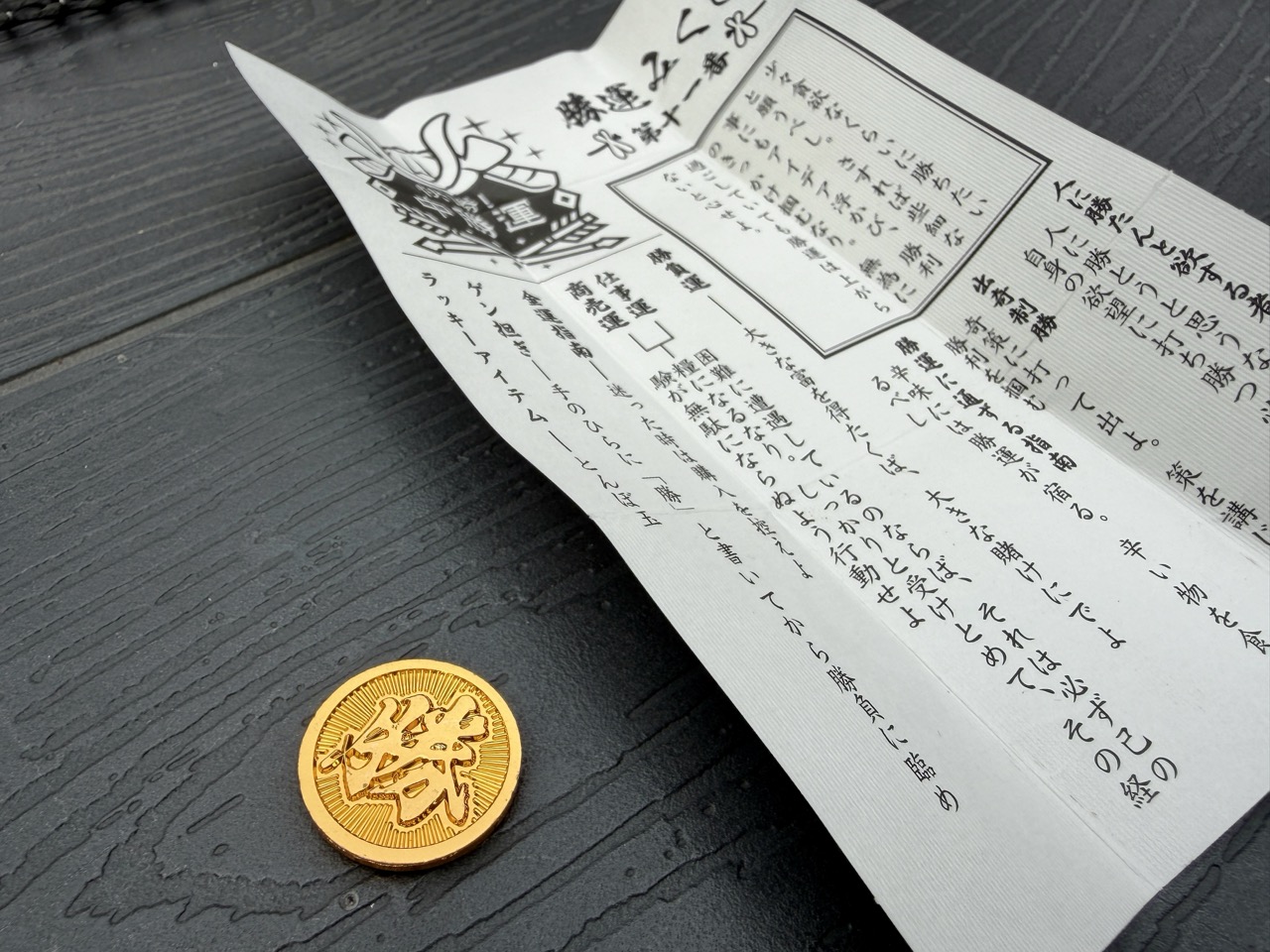 而充满气势、镶嵌金银色彩的「金运与胜运神签」最吸引我的目光,每张神签会附赠一枚精致的开运金币。旅人们,金色包装的「金运」、银色包装的「胜运」,你想抽中哪一个?