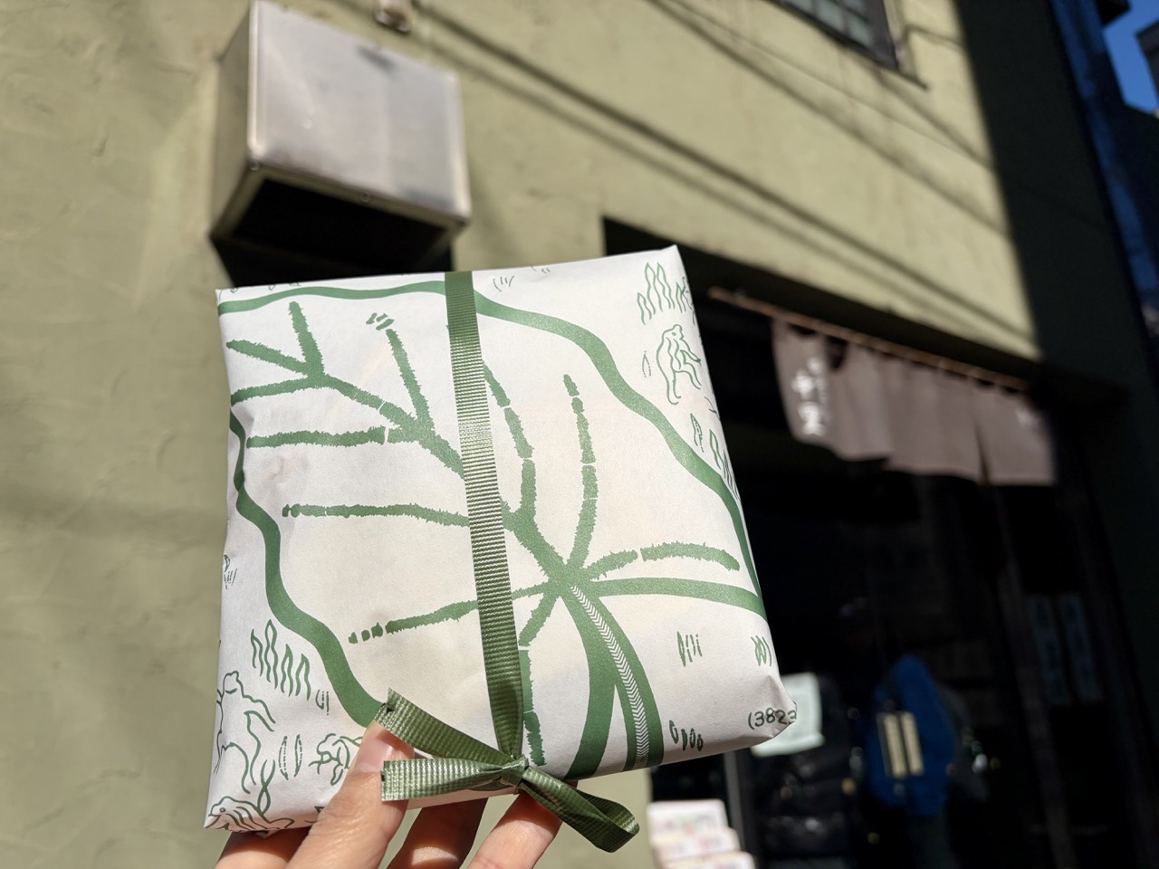 包装纸是充满和风意境的视觉享受:在翠绿的芋头叶片下,几只小青蛙愉快地跳跃起舞,童趣又温馨。