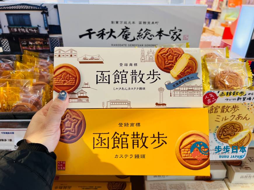 函馆千秋庵总本家(函館千秋庵総本家)是函馆百年老字号日式点心店。「函馆散步」是一款精致的日式馒头,外皮使用北海道严选小麦制作,口感湿润。除了牛奶馅,还有使用北海道十胜音更町产的红豆所制成的细致红豆馅。