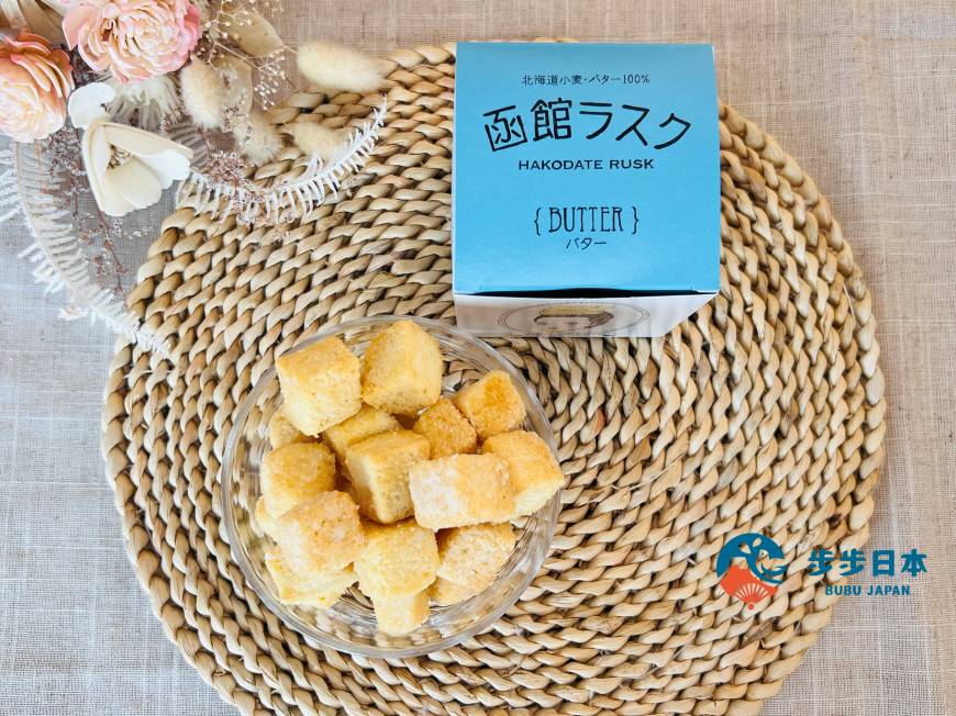 King Bake 的「函馆 RUSK(函館ラスク)」主打外层酥脆、内层轻盈蓬松的绝妙口感。使用 100% 北海道产的小麦及奶油制作的面包,虽然看似简单的法式脆饼,但每一口都能感受到奶油与砂糖的香气在口中扩散,那种迷人的滋味,让人忍不住一口接一口,完全停不下来!