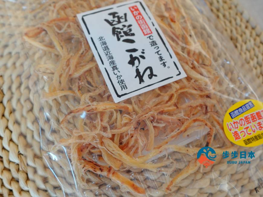 说到函馆特产,不得不提到各式各样鱿鱼(イカ)以及的昆布产品。「函馆带皮鱿鱼丝(函館こがね)」,最受观光客喜爱的伴手礼之一,使用国产真鱿制成,连皮以高温慢慢烧烤后,再撕成鱿鱼丝,风味浓郁、口感香脆,不论是下酒菜,或者当做点心都适合!
