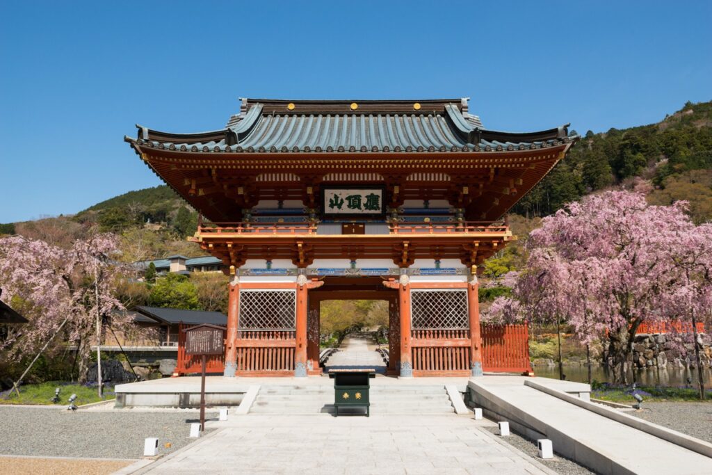由于胜尾寺坐落于山中,赏樱时节通常比大阪市区来得稍晚。进入 4 月后,山门旁一株姿态优雅的垂枝樱率先盛放,紧接着山樱、八重樱等各色樱花次第绽放,将整座寺院妆点得繁花似锦。