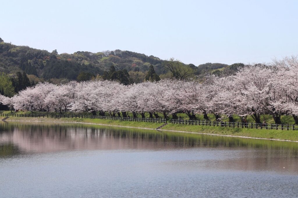 立冈自然公园沿着湖畔,种植了约 2,000 棵吉野樱,加上周围宽广的绿地,是当地人喜爱的野餐地点。如果想要久待,这里提供复合型的休闲设施,如钓鱼、露营,还可免费租借帐篷与烤肉设备(需预约,食材及部分设备需另外付费),十分适合喜爱户外活动的游客。尽管离熊本市中心有一段距离,但因拥有多样化的园区服务,驱车前往也不虚此行。