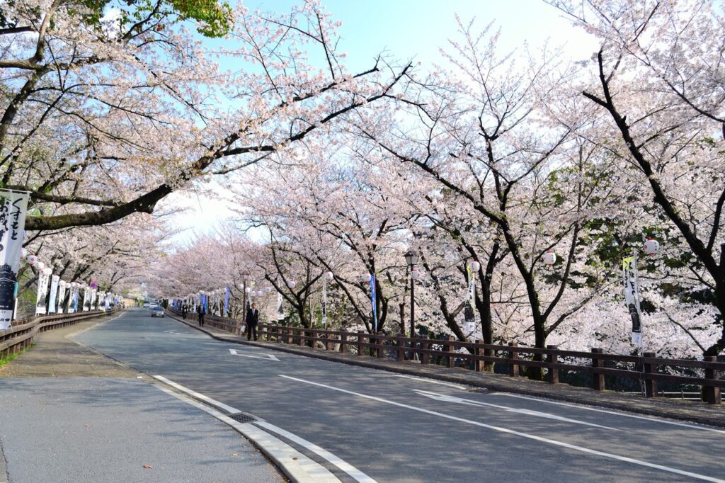 活动当天将封闭部分路段,改为行人徒步区,车水马龙的道路变身活力满满的粉色嘉年华。游客可以携带野餐垫坐在樱花树下,一边品尝摊贩美食,一边感受熊本的热情。2026 年的樱花祭典定于 3 月 29 日(日)举行,记下这个日期,一起参加这场樱花盛宴吧。
