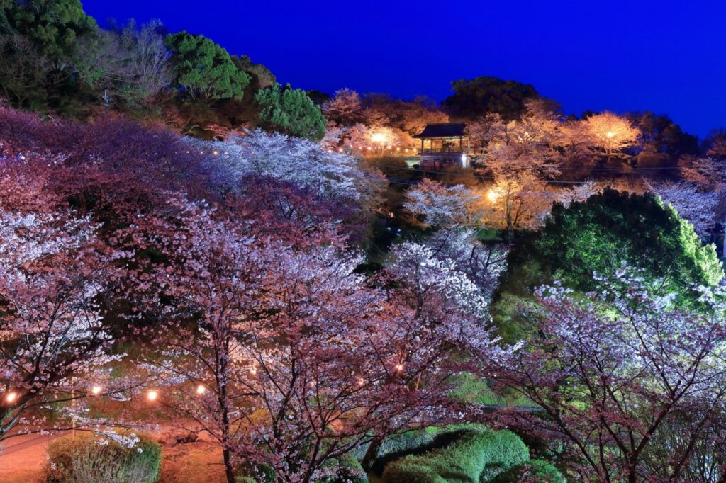 花冈山公园|俯瞰熊本市中心,将城市夜景与樱花尽收眼底