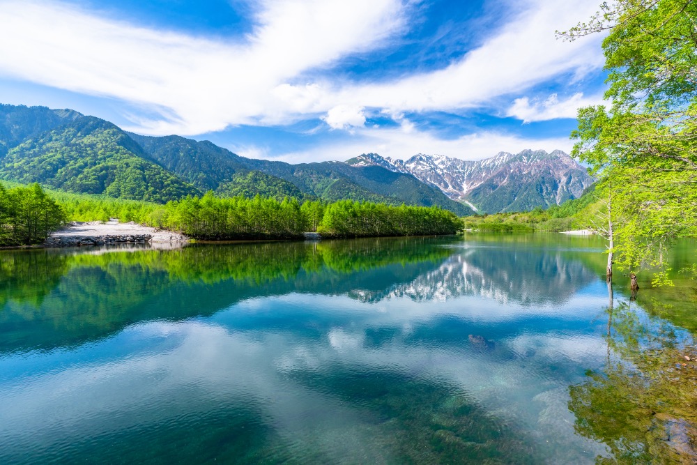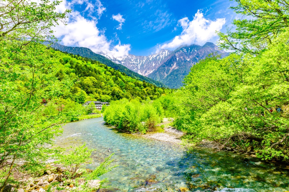 上高地位于长野县松本市,海拔约 1,500 公尺日本北阿尔卑斯山脉的中央,保留最天然、未受人为干扰的自然景观,包括森林、湿地、河流、池水,以及各种野生动植物等,被称为「风景的财产(風景の財産)」,因其原始美而享有盛名,更被指定为日本特别天然纪念物和特别名胜,每年吸引着超过百万来自各地的旅人造访。